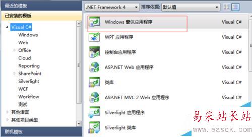 1、使用VS2010創(chuàng)建windows窗體應(yīng)用程序。在右側(cè)的已安裝模板中,選擇Visual C#,右邊會(huì)顯示出各種項(xiàng)目類型。這里第一項(xiàng)就是Windows窗體應(yīng)用程序。