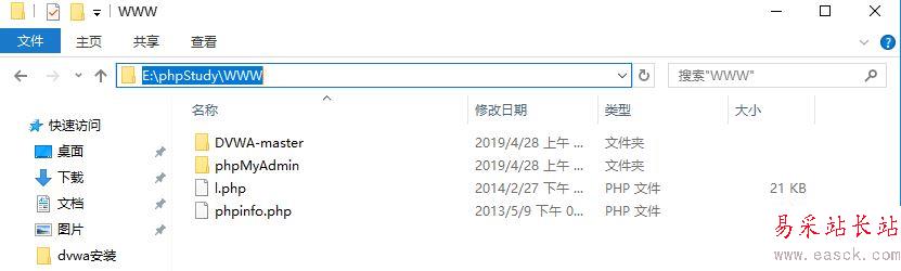 2.2下載到的是一個 DVWA-master.zip的壓縮包,這個壓縮包需要解壓到phpStudy的WWW目錄下(也可以先在下載的目錄解壓然后復制到WWW下面),