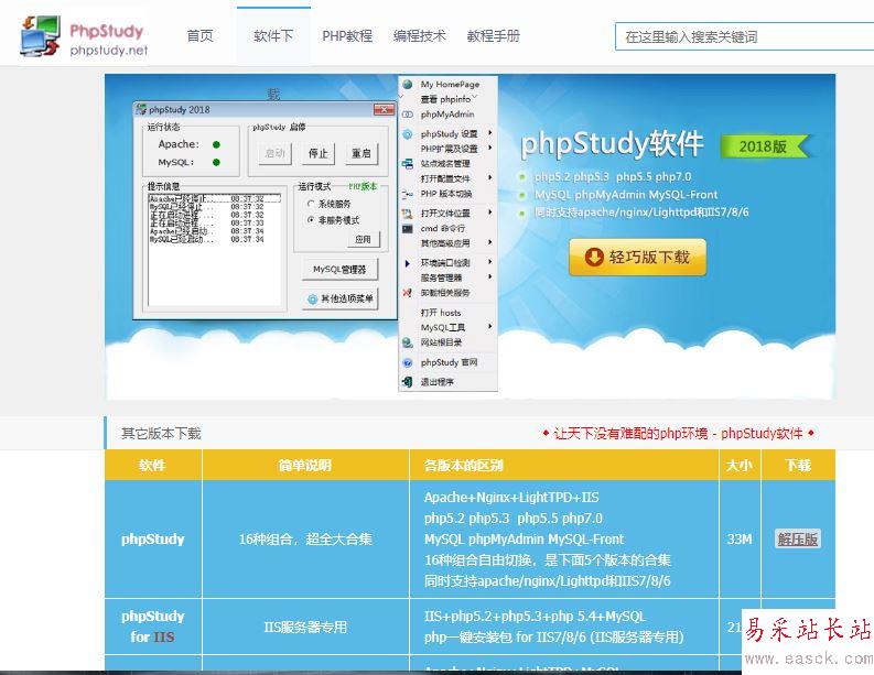 1.2點擊標題欄的“軟件下載”,進入phpStudy的版本選擇下載界面: