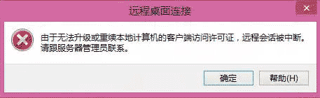 并不能解決問題,之后出現了新的錯誤提示,如第二個圖:“遠程會話已斷開連接,因為訪問被拒絕導致許可證存儲的創建失敗。請使用提升的權限運行遠程桌面客戶端。”