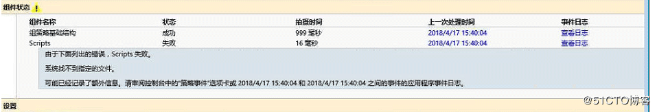組策略結果集和相應時間點的事件日志中發現了如下報錯: