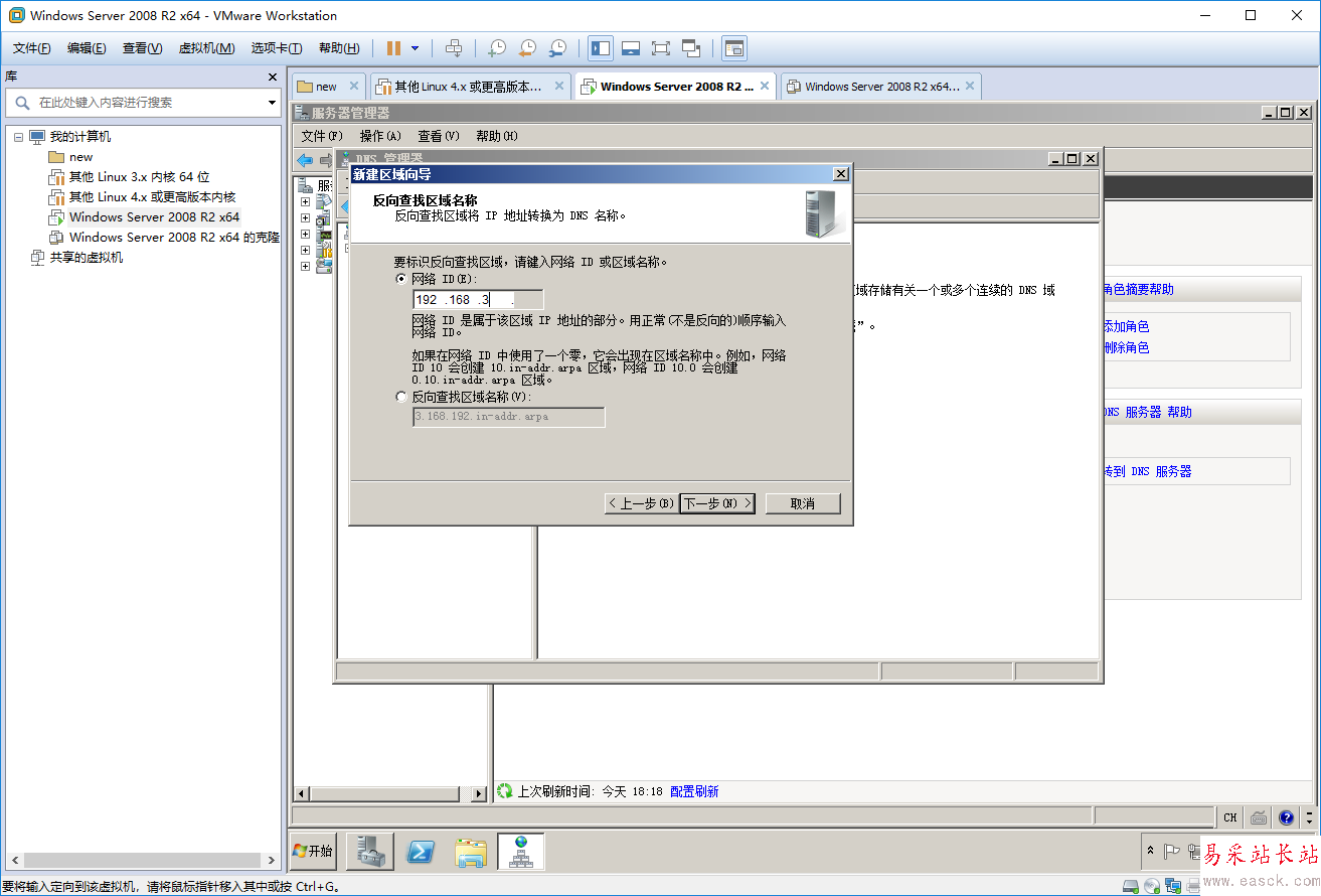 進入反向區域查找名稱配置輸入網絡號,點擊下一步,下一步,下一步,完成。