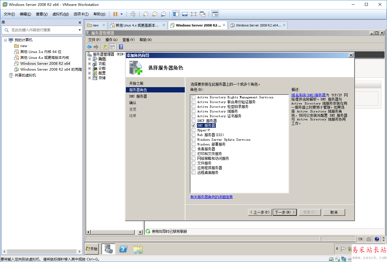 (1) 打開“添加角色”,安裝DNS服務。