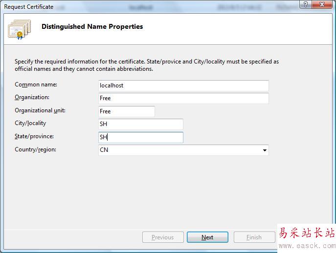 2.Create Certificate Request選項則提供了可自定義創建證書的方式,見下圖: