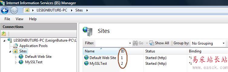 其中/S:site id可以從 IIS根目錄->Sites 里看到,如下圖: