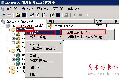 1. 登錄云服務器--打開IIS管理器--應用程序池--新建(N)--應用程序池。如下圖