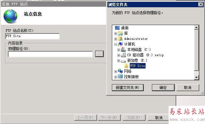 輸入FTP站點名稱和FTP指向的路徑;選擇“下一步”;