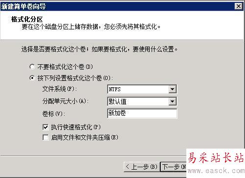 6、 格式化分區,默認勾選了“執行快速格式化”;選擇“下一步”;