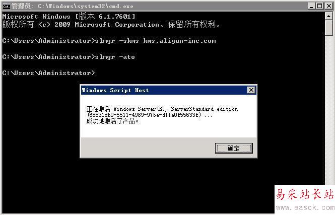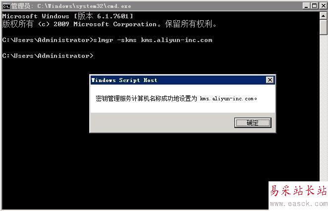 3、輸入slmgr -skms kms.aliyun-inc.com