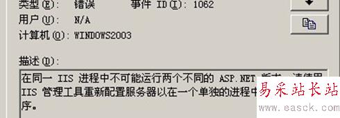 3.為4.0程序創(chuàng)建應(yīng)用程序池,2.0和4.0網(wǎng)站不能共用一個(gè)應(yīng)用程序池,不然會(huì)在我的電腦—右鍵--管理--系統(tǒng)工具--事件查看器—應(yīng)用程序中出現(xiàn)如下圖3-1的錯(cuò)誤。