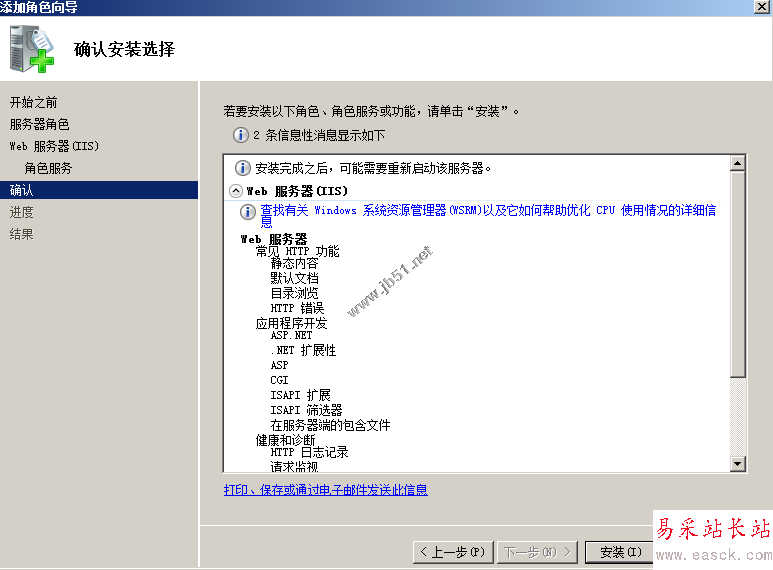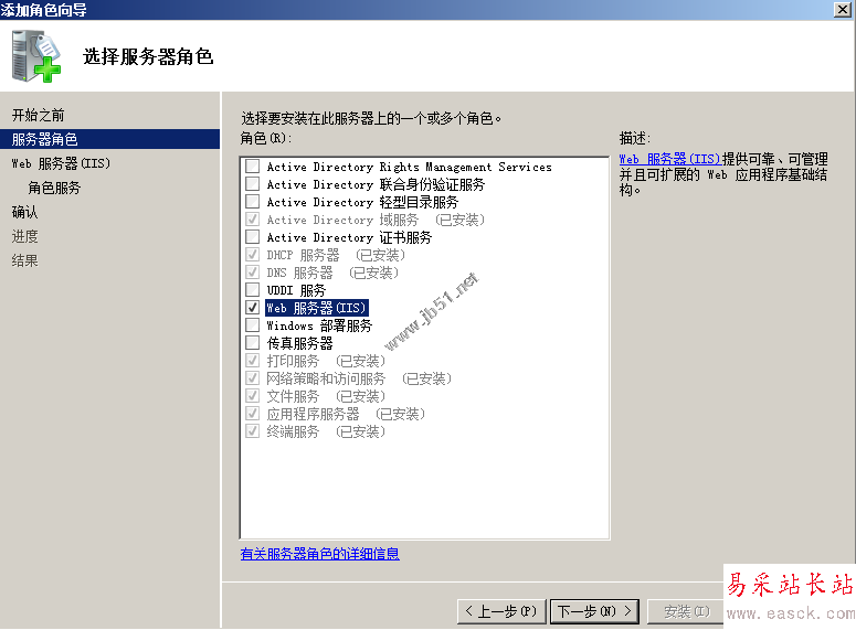 7、安裝完后,就可以了,到角色里面就會看到“WEB服務器(IIS)“這個角色了