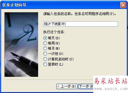5:輸入任務名稱,你可以使用默認名或者取一個你喜歡的名字,選擇任務的執行方式,我們選擇“每天”項