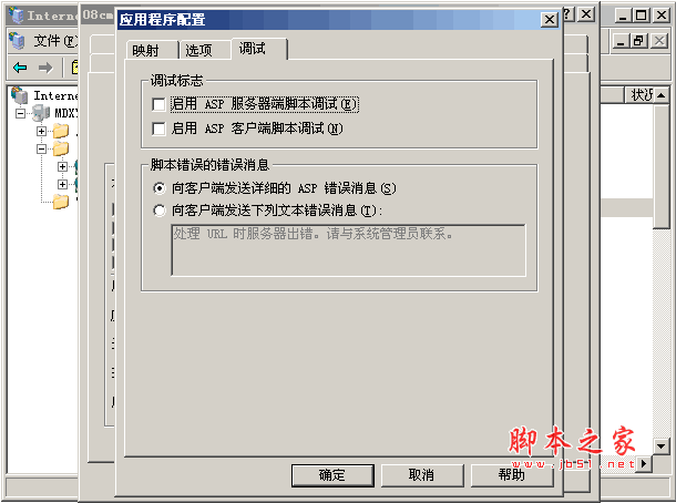 網站 > 屬性 > 主目錄 > 調試
