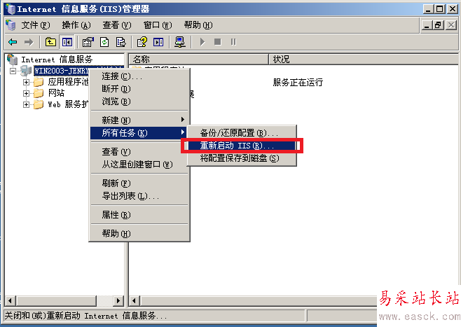 我們打開Internet 信息服務(IIS)管理器,找到“網站”,右鍵打開“屬性”選項卡;