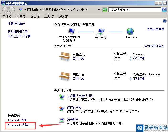 我的桌面 》網絡 》右鍵 》屬性 》左下角 防火墻
