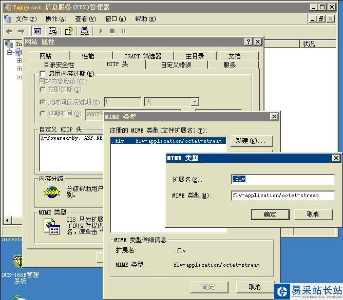 二、如果可以解釋,就好辦了,登陸服務器,依次打開“IIS管理器”——“網(wǎng)站屬性”——“HTTP頭”——“MIME類型”——“新建”,擴展名指定為.FLV,MIME類型為flv-application/octet-stream,確認退出即可。