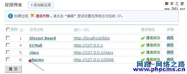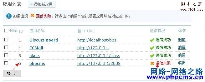 我們返回UCENTER應(yīng)用列表,發(fā)現(xiàn)是 通信失敗