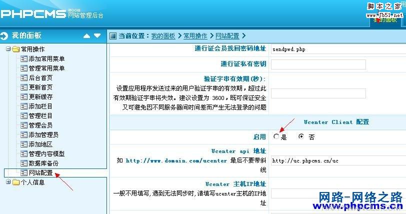 B.我的面板-->網(wǎng)站配置-->通行證-->Ucenter Client 配置