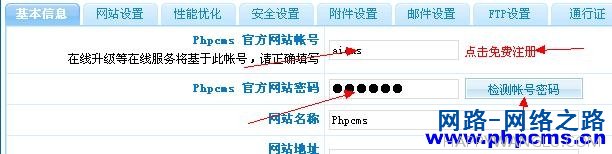 填寫好,Phpcms 官方網(wǎng)站帳號(hào) 和 密碼