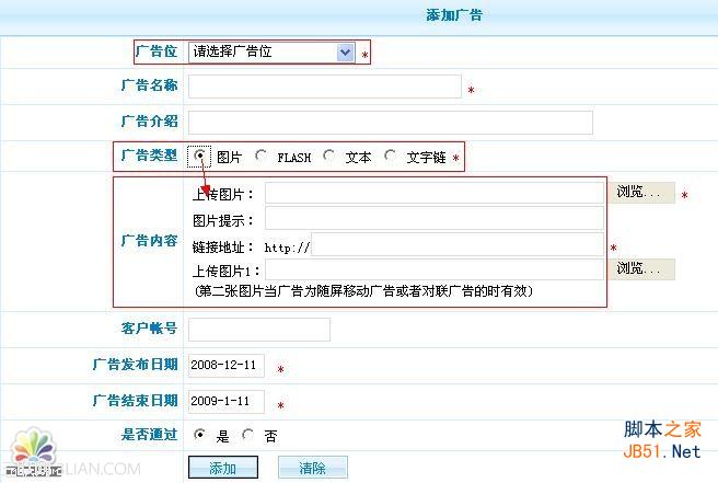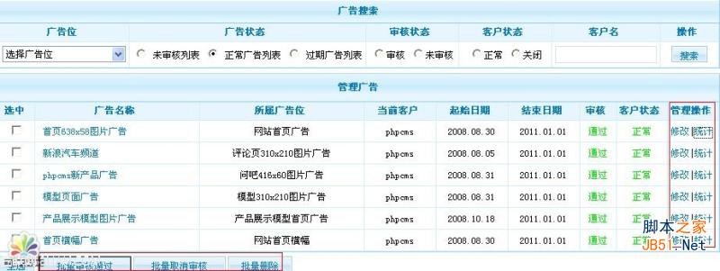 廣告管理,可以統(tǒng)計本站的廣告、停止、發(fā)放、修改、搜索、監(jiān)控廣告有效時間