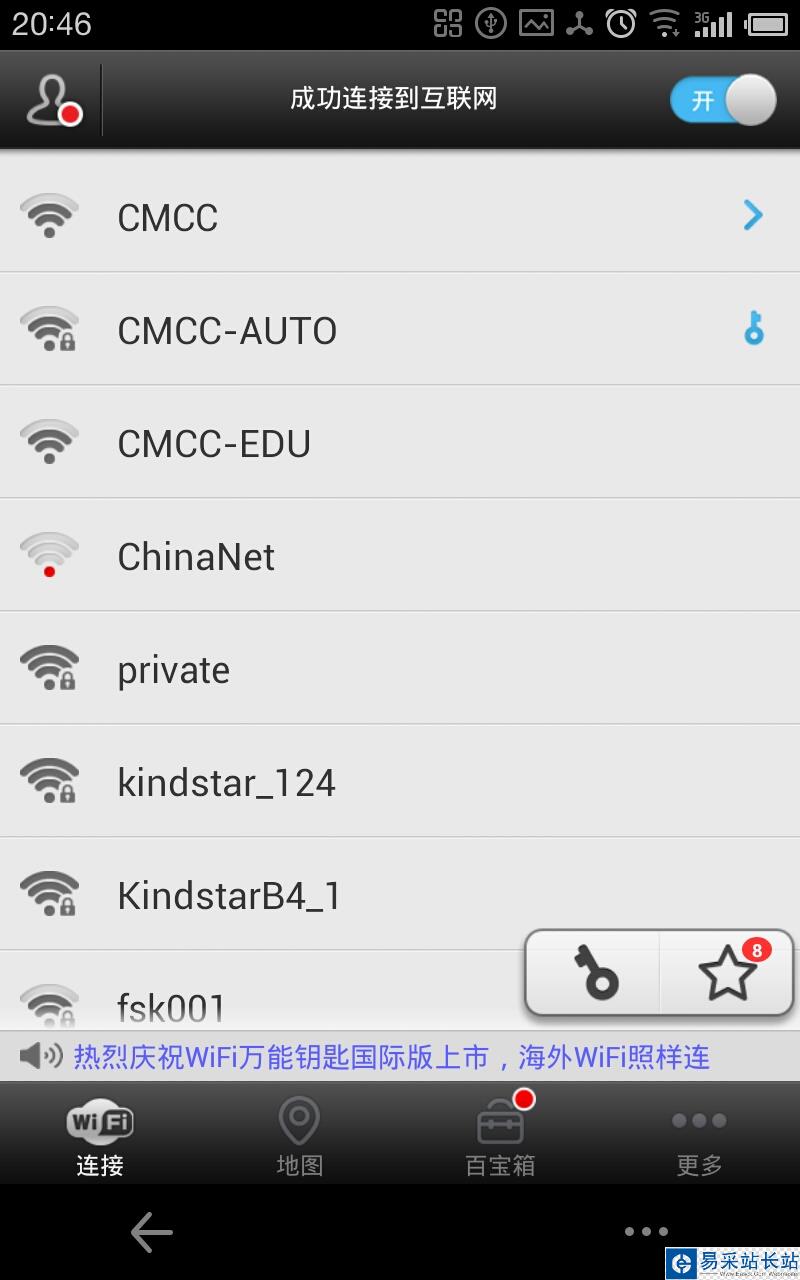 3.第三個軟件是【wifi萬能鑰匙】,如果你周圍已經有被破解的無線網絡,那你就有福了
