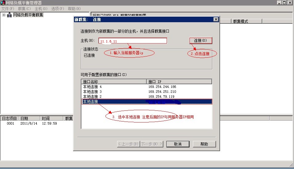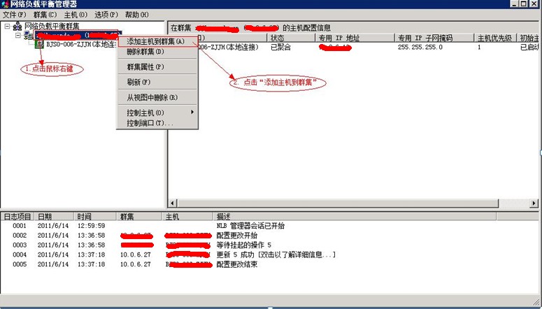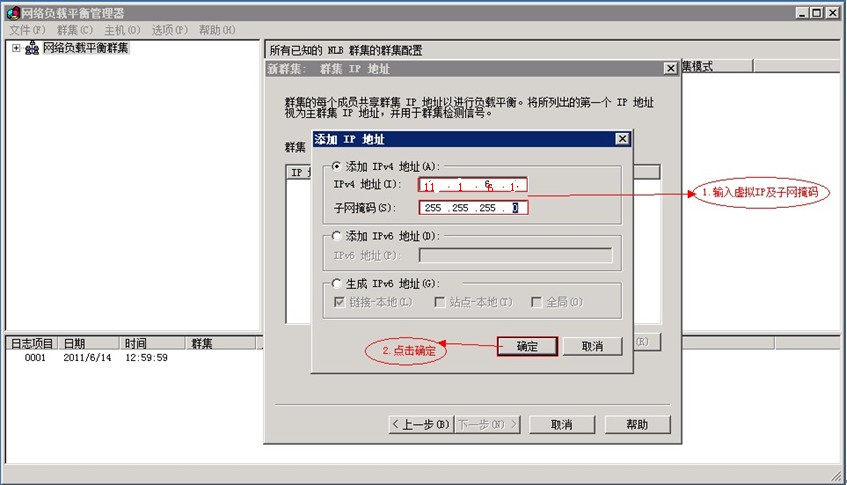 在完成以上的服務安裝后, 在開始->網絡負載平衡管理器(以11.1.6.11服務器為例)