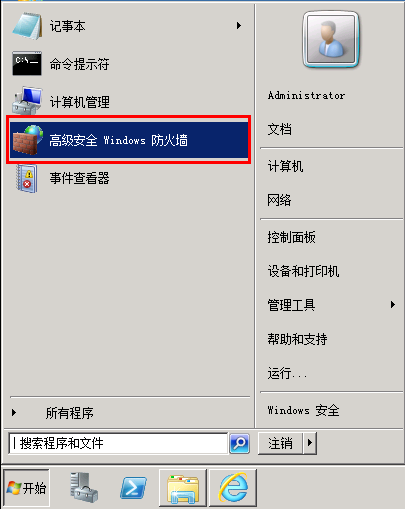 3、點(diǎn)擊“開始” “高級安全Windows防火墻”,如下圖所示;