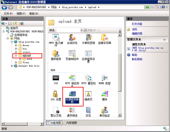 經過上面這樣設置承在一個執行權限,一旦用戶上傳了惡意文件,我們的服務器就淪陷了,但是我們這里又不能不給,所以我們還要配合IIS來再設置一下。