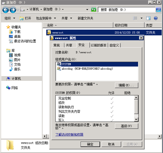一般的網站都有上傳文件、圖片功能,而用戶上傳的文件都是不可信的。所以還要對上傳目錄作單獨設置。上傳目錄還需要給IIS_IUSRS組再添加“修改”、“寫入”權限。