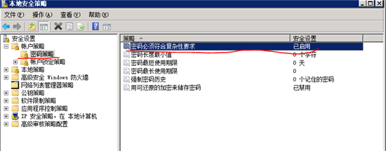 依次打開 "安全設置"-----"帳戶策略"-----"密碼策略"-----密碼必須符合復雜性要求,啟用.
