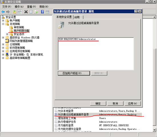 這里主要是限制哪些用戶可以使用遠程連接登錄到服務器,默認是Administrators組和Remote Desktop Users組,這二個組的成員都可以遠程登錄到服務器,而我們一般作為WEB服務器,用戶不會太多,可能就只有一個管理員,所以就沒必要指定組,直接指定用戶就可以了。