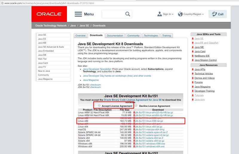 因為我的虛擬系統是32位的,所以我下32位JDK,根據你的情況具體看。x86代表32位系統,x64代表64位系統。