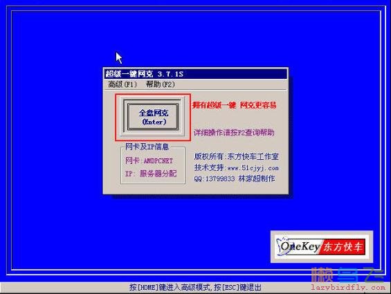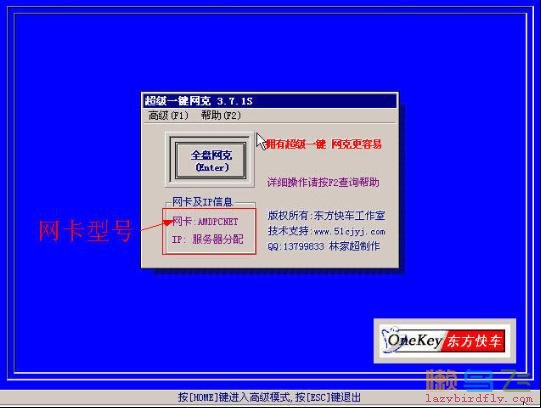 按字母鍵或按方向鍵選擇加載網卡驅動,如果你不確定哪個驅動的話可以多試兩次,如果網卡驅動加載不正確的話,有時候也可以進行網克,但速度肯定會很慢。選擇好網卡驅動后進入網克界面。