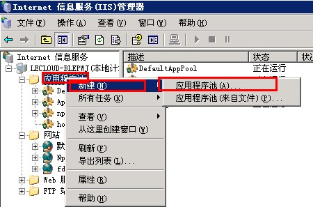 1. 登錄云服務器--打開IIS管理器--應用程序池--新建(N)--應用程序池。如下圖