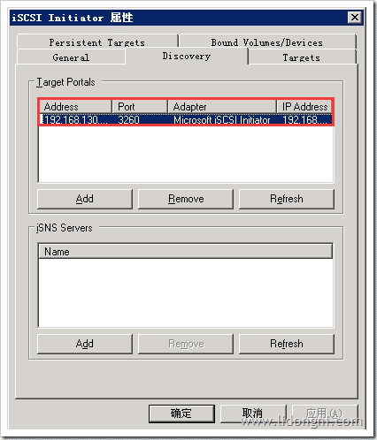 10、這時候配置對應(yīng)的ISCSI目標(biāo)服務(wù)器即可連接成功;