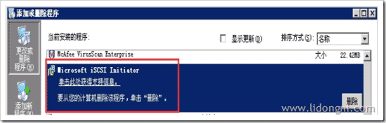 9、修復(fù)安裝完成以后,在添加、刪除程序中可以看到對應(yīng)的軟件,刪除對應(yīng)的軟件,再重啟服務(wù)器,再進(jìn)行對應(yīng)ISCSI軟件的安裝;