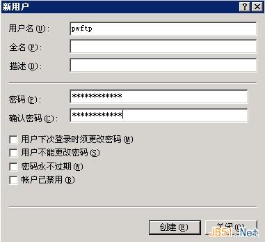 如圖輸入你的 ftp 用戶名、密碼,然后切換到 iis 刪除默認的ftp站點,然后如圖新建