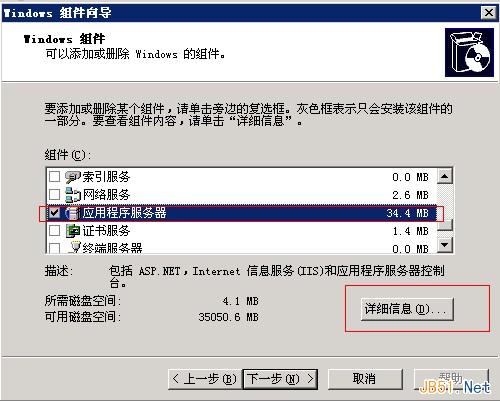 出現上面的圖片“選中internet 信息服務(iis)” 點擊圖片中的“詳細信息”
