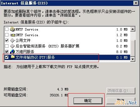 選中圖片中的“文件傳輸協議(ftp)服務”然后點擊“確定”
