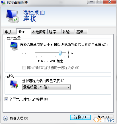 在“顯示”選項(xiàng)卡中,顯示配置調(diào)整窗口大小,一般是“全屏”