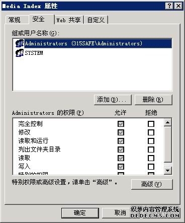 先說關于系統的NTFS磁盤權限設置,大家可能看得都多了,但是2003服務器有些細節地方需要注意的,我看很多文章都沒寫完全。