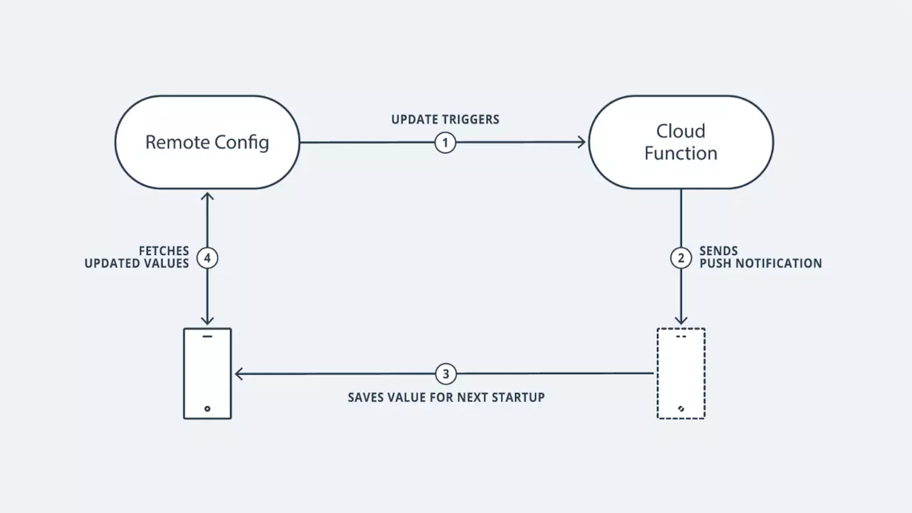 將應用程序訂閱到Firebase Cloud Messaging主題 創建在遠程配置更改時觸發的云功能 處理AppDelegate中的靜音推送通知 在下次啟動時使遠程配置緩存無效如何設置Firebase云消息傳遞超出了本文的范圍,但文檔是一個很好的起點。