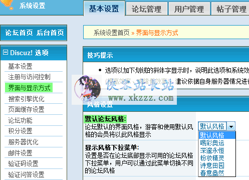 用管理員登錄論壇后臺 => 基本設置 => 界面與顯示方式 => 默認論壇風格:選擇“默認風格”