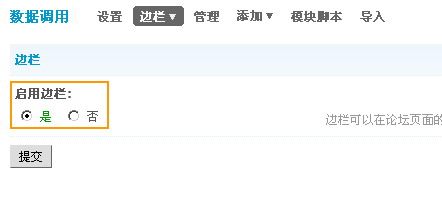 進(jìn)入后臺(tái) => 工具 => 數(shù)據(jù)調(diào)用:點(diǎn)擊邊欄下拉框中的全局,然后選擇在啟用邊欄中選擇:是