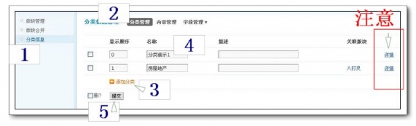 圖 3 說明:字段管理,就是你的分類管理,例如分類 A 設置為聘請;分類 B 設置為 房產。。。以此類推。