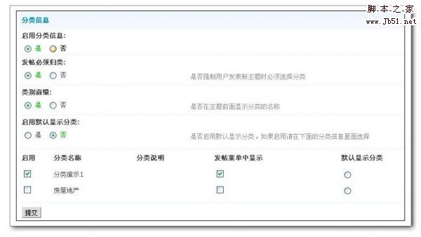發帖必須歸類:設置,將強制用戶發表新主題時必須選擇分類;自定義設置