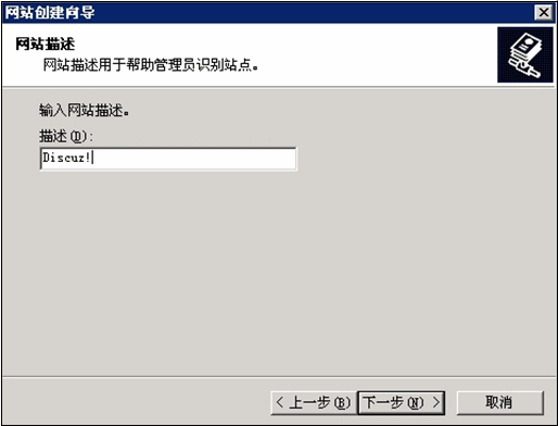 (2) 輸入網站名稱,改名稱僅為 IIS 中的標識,可任意輸入。如下圖所示: