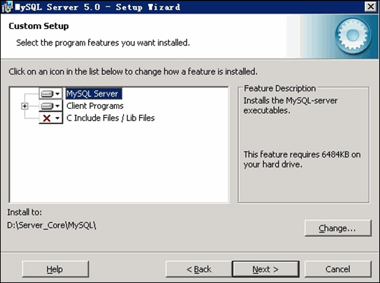 點擊"Change"更改 MySQL 安裝目錄,如下圖所示: