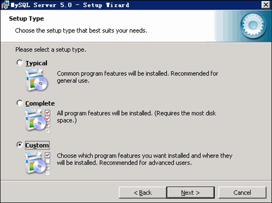 選擇 Custom 自定義安裝,如下圖所示:
