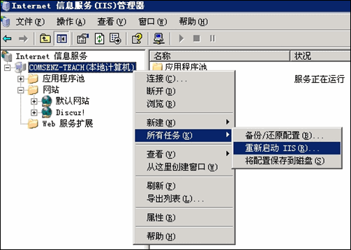 (6) 重啟 IIS 服務,如下圖所示: